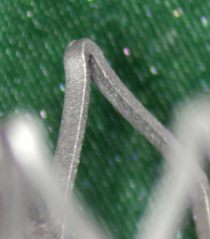 此处显示的未喷砂的支架表面(500x)边缘锋利,并受到制造损坏。半径范围仅为3-8 m。